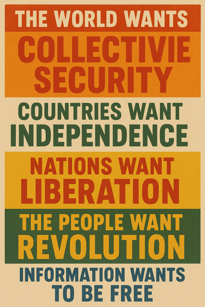 The world wants collective security, countries want independence, nations want liberation, the people want revolution, and information wants to be free.