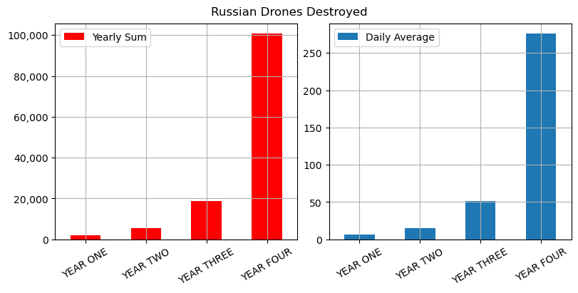 Russian casualties are enormous. On average, there are 1000 Russian casualties per day. Russia achieves minimal territorial advances at enormous cost, eg. Pokrovsk (250,000 casualties). Ragnar Gudmundsson estimates 227 Russian casualties for each sq km gained. Click on “Area gains” on the sidebar. Ragner’s site provides a very comprehensive statistical overview of the state of the war.
