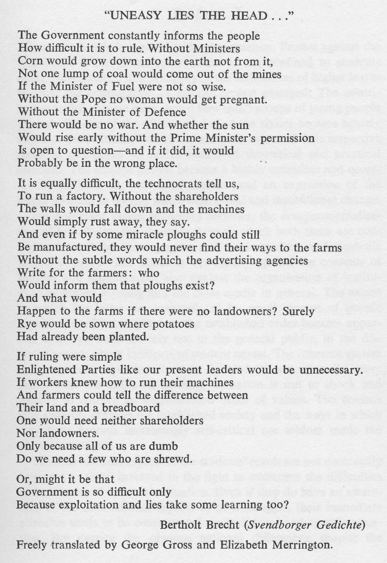 There is nothing to be gained in condemning these omissions – what’s happened has happened and the water we once poured into the wine cannot be drained off again, as Brecht once put it – but we need to understand them (to ask questions) to understand the social and economic forces that enabled, or forced, the great majority of people to be pushed off stage, or not even invited on it in anything other than the most servile and ‘meaningless’ of roles. I say ‘meaningless’ with a sense of irony because without them, without Caesar’s cook, Lima’s mason’s, the builders of the Chinese wall etc there would have been no stage for the ruling classes and associated flunkies to perform and preen themselves on in the first place. In saying this I do not intend to gloss over or deny the role or capabilities of particular individuals in history. I do suggest however that they and their achievements need to be seen in context and the context I am focussing on is the enabling, and in this sense the central role of the ignored, the hindmost.